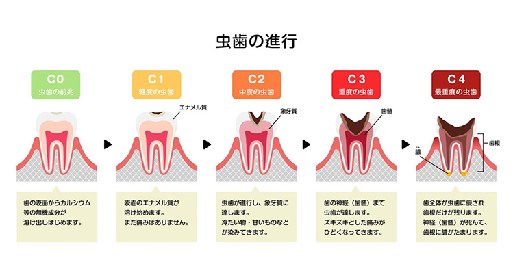 虫歯は進行の程度で5段階に分けられます。