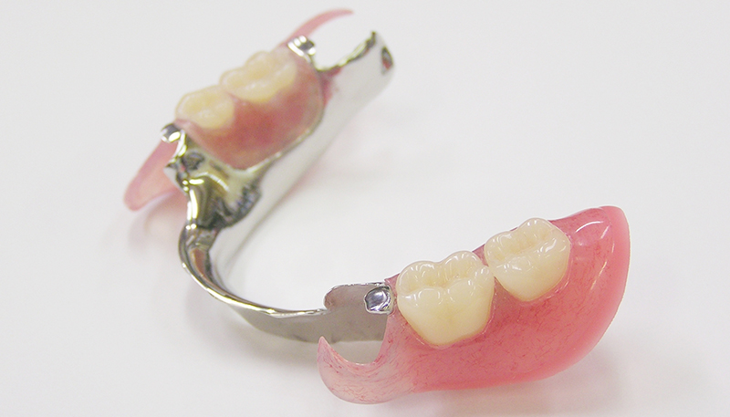 部分入れ歯とは上または下の顎の歯が部分的にない場合に入れる部分的な入れ歯のこと。