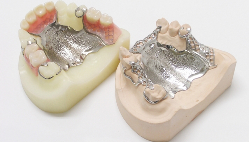 レジンの変わりに金属を用いることができます。薄くても割れる心配がないため保険の入れ歯よりも違和感が少ないです。