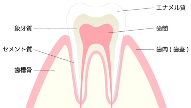 その内側に象牙質、そのまた内側には歯髄という、血管や神経がまとまっている場所があります。これが、いわゆる神経です。