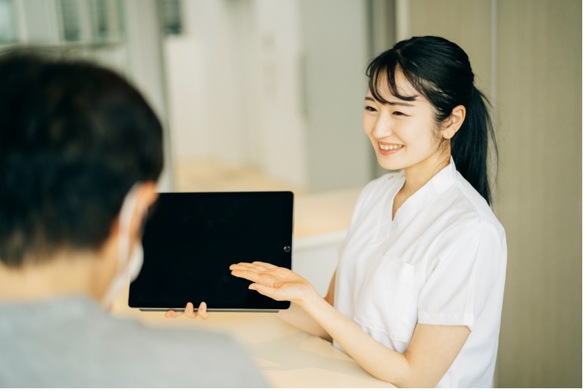患者様のお口の中の検査をし、前回の検診から痛みや口内のお困りごと、体調の変化がないかお話を伺います。